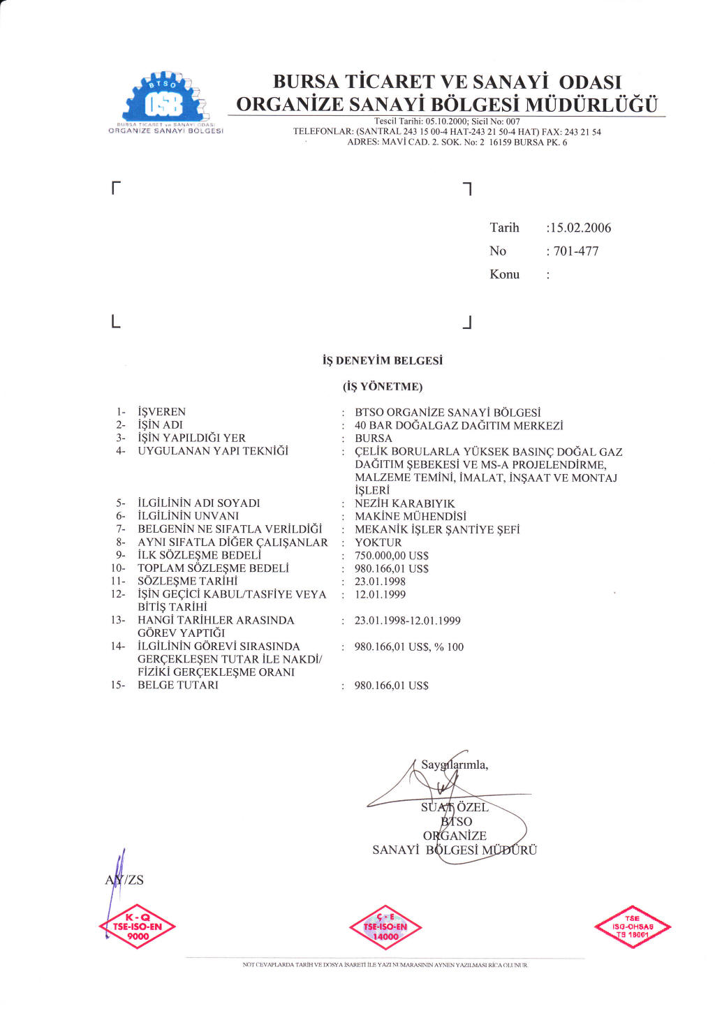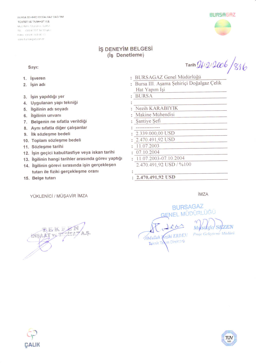 İş Bitirme Belgeleri